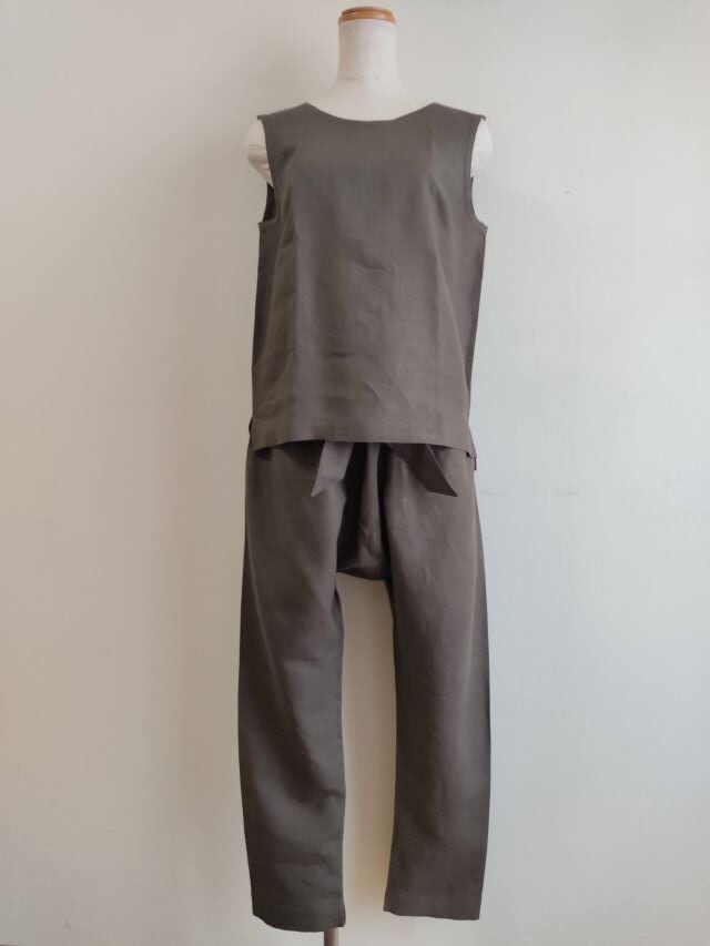 先染めリネン100%生地でCool・ジェンダーレス・セットアップのトップス単品販売ページです。